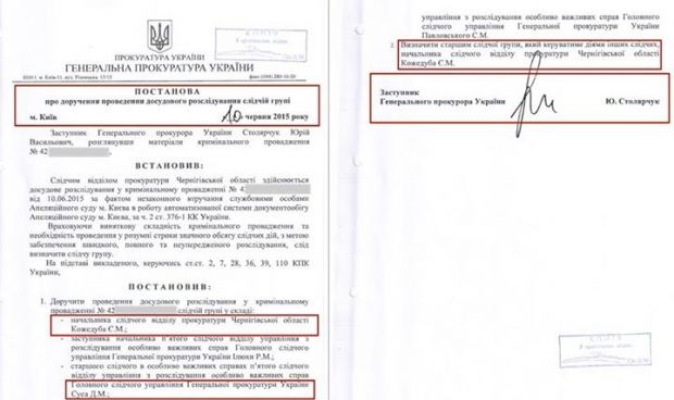 "(Рішення про обшуки у Чернушенка прийняті чернігівським судом – УНІАН) наштовхує на думку, що Новозаводський районний суд Чернігова якимось чином лояльний. По-цьому, призначаємо керувати групою слідчих, чисто формально, місцевого Кожедуба. Щоб підпадало під чернігівську юрисдикцію. І передаємо Новозаводському", - зазначає Сидоренко.